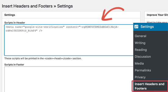 اضغط على HTML tag وقم بنسخ الكود الظاهر في الرسالة وألصقه في ترويسة الموقع، في ملف header.php ضمن القالب المفعل لديك.