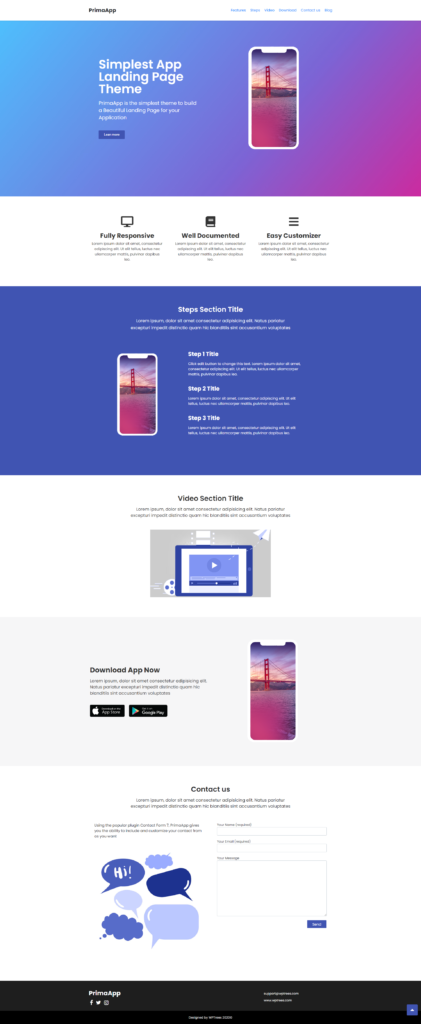بريما أب هو قالب سلس سريع وبسيط مبني على الإليمينتور ليقدم لك موقع مميز كواجهة لتطبيق الهاتف الذكي ، الخاص بك، منظم وسهل التخصيصليقدم لك أفضل واجهة تعريفية بتطبيق الأندرويد أو الأي أو اس الخاص بك.
